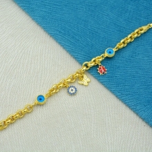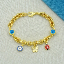 925 Ayar Gümüş Doc Zincir Nazar Boncuklu Uğur Böceği Kelebek Motifli Çocuk Ve Bebek Bileklik