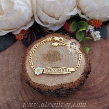 Gümüş Papatya Motifli Oymalı İsim Yazılı Çocuk Bileklik