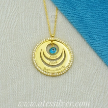 925 Ayar Gümüş Nazar Boncuğu Sallantılı Kişiye Özel Çerçeve Kolye