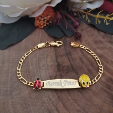 Twety ve Uğur Böceği Motifli Gümüş Çocuk Bileklik