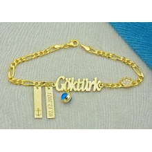 925 Ayar Gümüş Üzerine Altın Kaplama İsimli Çocuk Bileklik