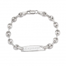Gemici Zincir Kişiye Özel Gümüş Çocuk Bilekliği, 925 ayar gümüşten üretilmiş ve sağlam gemici zincir modeli ile tasarlanmış şık ve dayanıklı bir aksesuardır. Bu bileklik, çocuğunuzun ismi, doğum tarihi veya özel bir mesaj ile kişiselleştirilebilir. Gemici zincir modeli, dayanıklılığı ve klasik tarzıyla günlük kullanım için idealdir, aynı zamanda çocuğunuzun stiline şık bir dokunuş katar. Bu bileklik, hem özel bir hatıra olarak saklanabilecek anlamlı bir parça hem de sevdiklerinize sunabileceğiniz zarif ve kişisel bir hediye seçeneğidir.