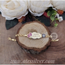 Kaplama seçenekleri arasında gold, rose gold ve beyaz altın alternatifleri bulunur, bu sayede farklı zevklere ve tercihlere hitap eden bir ürün seçme imkanı sağlar. 15 cm zincir uzunluğu ile minik bilekler için ideal olan bu bileklik, klasik Figaro zincir modeliyle tasarlanmıştır ve toplamda 6 gram ağırlığa sahiptir.