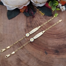 Gümüş Papatya İsimli Çocuk Bileklik, sevimli papatya motifleri ve kişiselleştirilebilir isim detayı ile çocukların stiline zarif bir dokunuş katan özel bir aksesuardır. 925 ayar gümüşten üretilmiş bu bileklik, zirkon ve lisanslı Swarowski taşları ile süslenerek parıltılı bir görünüm sunar. Gold, Rose Gold ve White Gold kaplama seçenekleri ile her tarza uygun alternatifler sağlayan bileklik, 6 gram ağırlığındadır ve 15 cm uzunluğundaki figaro zincir modeli ile tamamlanmıştır.