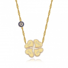 Yonca modeli ile şansı, nazar boncuğu detayıyla korumayı temsil eden bu kolye, hem günlük kullanımda hem de özel günlerde stilinizi tamamlayacak ideal bir parçadır. 1 yıl bakım ve onarım garantisi ile güvence altına alınmış olup, tamamen el işçiliği ile üretilmiş olduğundan gramaj ve boyutlarda ± %5 oranında sapma olabilir. Zarafeti ve anlamı bir araya getiren bu kolye, sevdiklerinize sunabileceğiniz şık ve anlamlı bir hediye seçeneğidir.