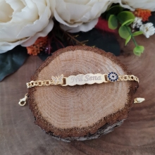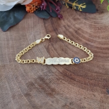 Kelebek ve Nazar Boncuklu İsimli Gümüş Çocuk Bileklik