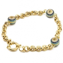 Nazar Boncuklu Detaylı Gümüş Bayan Bileklik, 925 ayar gümüşten üretilmiş ve zarif nazar boncuğu figürü ile süslenmiş şık bir aksesuardır. Nazar boncuğu, kötü enerjilere karşı koruma sağladığına inanılan geleneksel bir sembol olarak bu bilekliğe anlamlı bir dokunuş kazandırır. Bilekliğin modern ve zarif tasarımı, hem günlük kullanım için ideal bir aksesuar hem de sevdiklerinize sunabileceğiniz anlamlı ve şık bir hediye olarak öne çıkar. Bu bileklik, stilinize zarafet katarken aynı zamanda koruyucu bir anlam taşır.