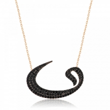 Siyah Zirkon Taşlı Vav Harfi Bayan Gümüş Kolye